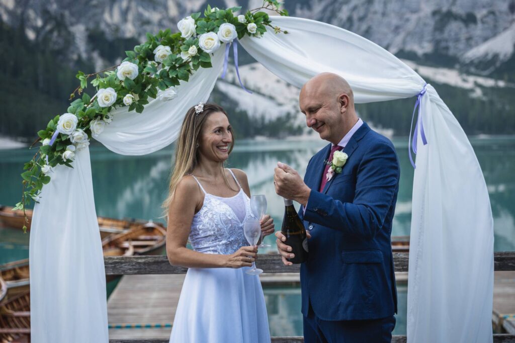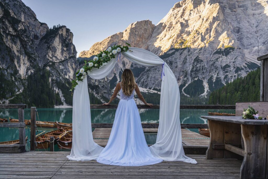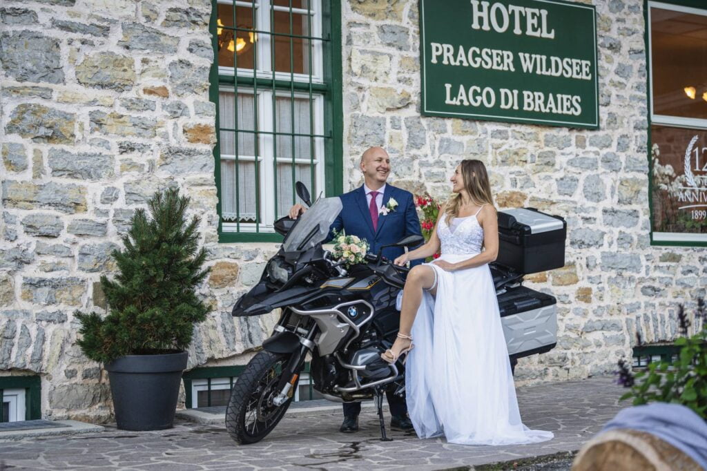 Tohle jsem si od první chvíle nemyslela, měla jsem pochybnosti už od samotného začátku hledání našeho místa. Nemusela jsem. Jako každá snoubenka jsem měla své představy a také jsme měli stížené podmínky, protože jsme si řekli, že pojedeme na motorce a rovnou z toho místa pojedeme na moto svatební cestu Evropou. První volbou po tomto rozhodnutí bylo Santorini, ale bohužel, teď již mohu říct bohudík za to, že to bylo tak daleko, na to jsme neměli dostatek času. Druhá volba bylo naše jezero Lago di Braies.