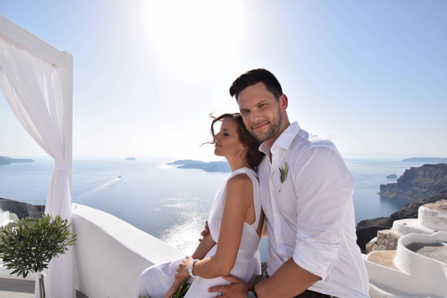 Svatební obřad se konal na řeckém ostrově Santorini – St. Irene.