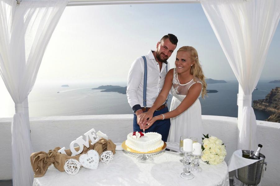 Svatební obřad se konal na řeckém ostrově Santorini – St. Irene. Snoubenci s rodinou byli ubytování v hotelu Veggera. Přejeme hodně štěstí a lásky.
