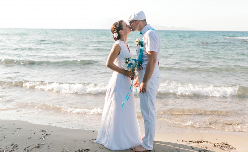 Svatební obřad se konal na řeckém ostrově Zakynthos na pláži Amoudi.